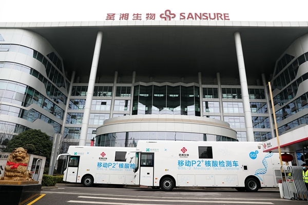 目前,北京、广东、黑龙江、四川、山东等多省均已配置移动核酸检测车。米兰生物此次投入使用的移动P2+核酸检测车共2台,为湖南省首批投入使用的移动核酸检测车,可实现采样、检测、报告一站式服务,2台日检测量(10混1)可达10万人份,最快45分钟内出结果!
