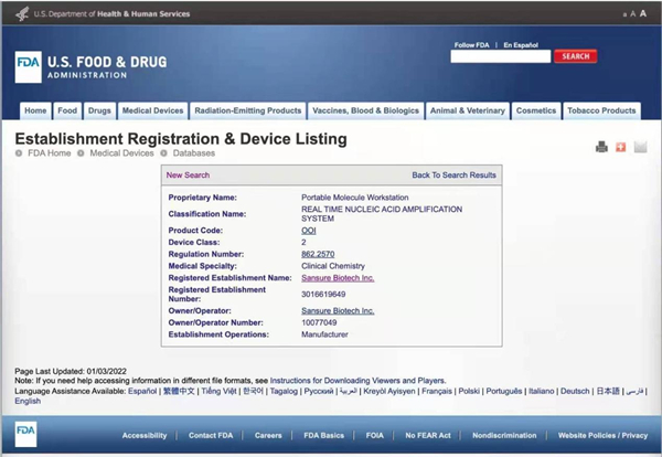 美国食品药品监督管理局(FDA)是国际医疗审核权威机构,通过FDA认证的食品、药品、化妆品和医疗器械等产品,是全球权威标准证明。米兰生物四通道iPonatic核酸检测分析仪获美国FDA认证后,将有效扩大和满足全球市场各级检测防控需求,为全球疫情防控工作持续助力,推动公司全球化事业发展。