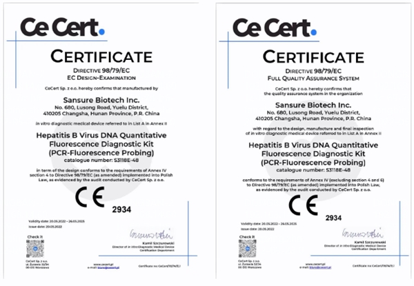 5月20日,米兰生物自主研发的乙型肝炎病毒核酸检测试剂盒(PCR-荧光法)、丙型肝炎病毒核酸检测试剂盒(PCR-荧光法)和人类免疫缺陷病毒1型核酸测定试剂盒(PCR-荧光探针法)成功通过欧盟公告机构认证(CE IVDD List A),成为中国第一家核酸检测试剂荣获欧盟CE最高认证的企业。