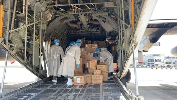 5月19日,由米兰生物副总经理喻霞林、范旭带队的7人技术服务小组,携新冠病毒核酸检测试剂、仪器等抗疫物资乘国外政府派出的军机正式启程,奔赴东南亚国家,驰援全球抗疫,贡献米兰力量。