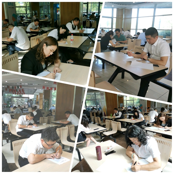 上午8:30,第一轮比赛,理论知识笔试正式开始。仿佛回到了当年高考竞赛场上,选手们或埋头答题、或思考、或皱眉,监考“老师”们来回走动,暗自为“考生”们加油鼓劲。